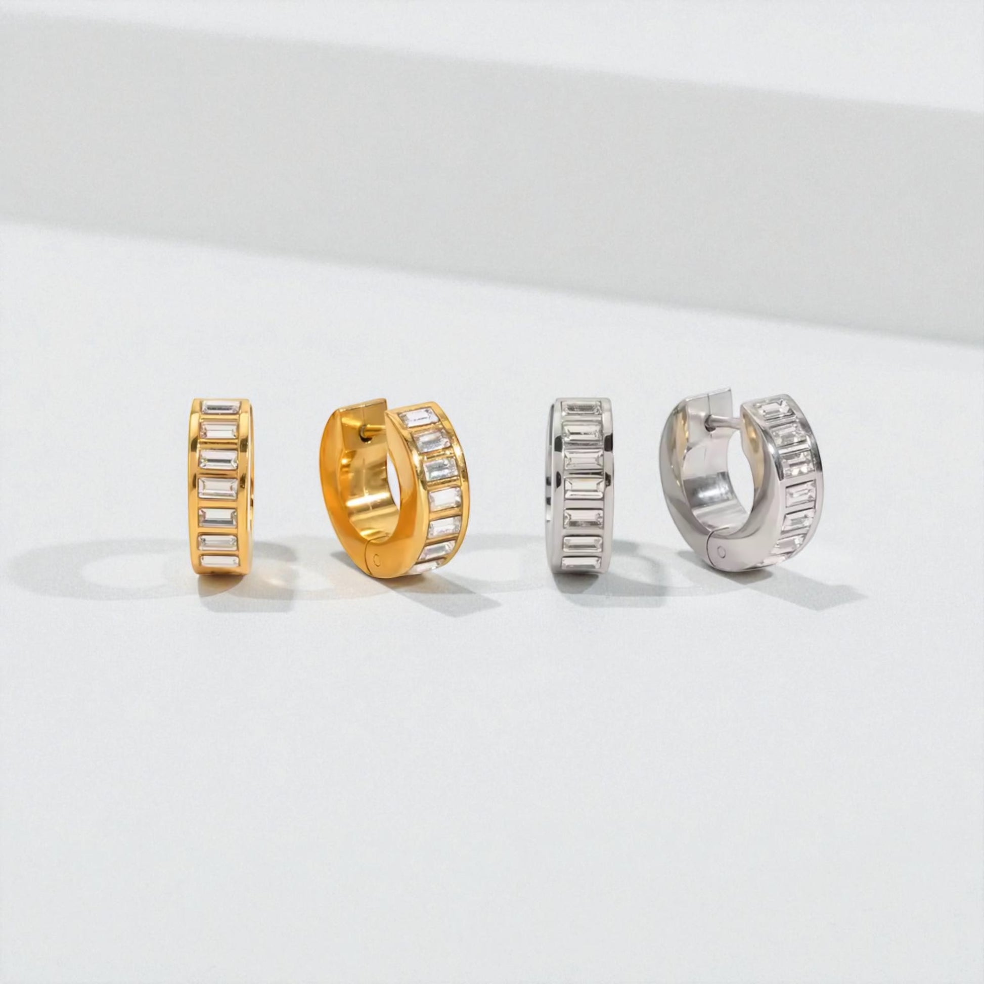 Stunning baguette crystal hoops that sparkle with every move. Versatile, elegant, and impossible to ignore—the earrings you'll wear constantly.