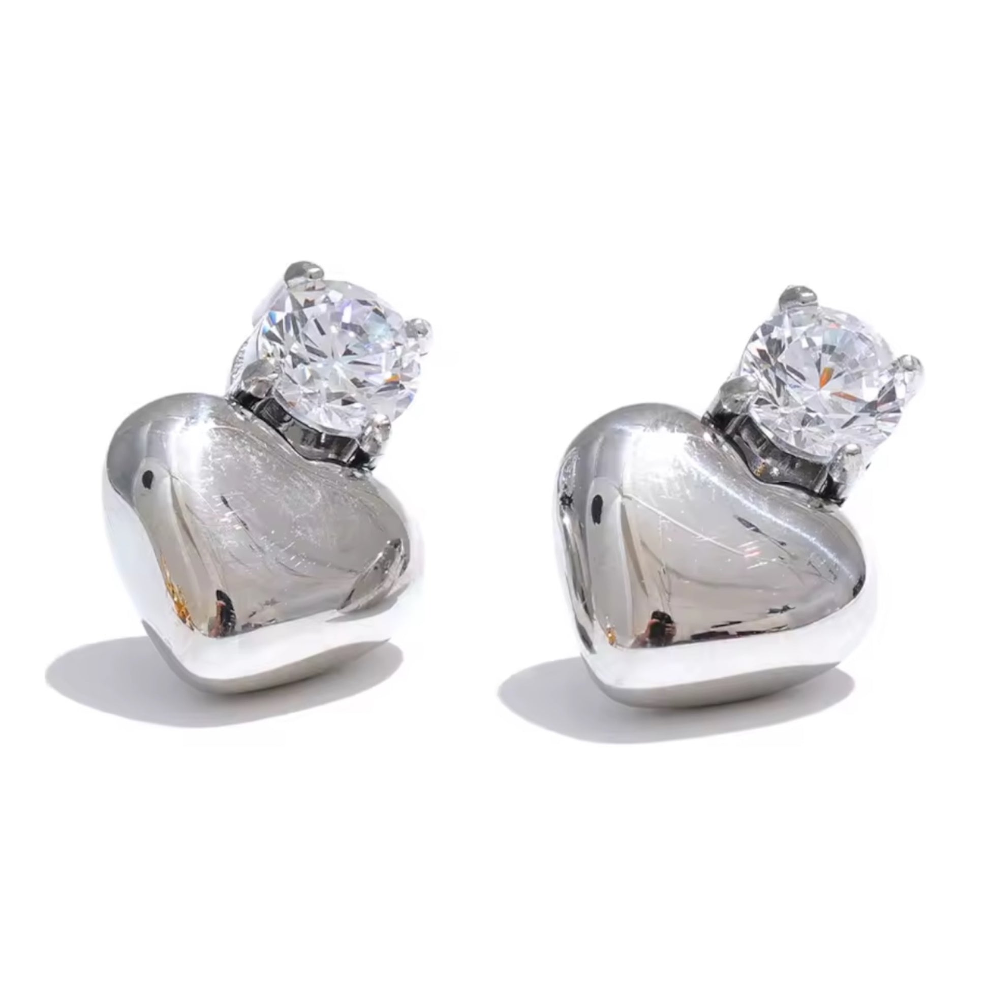 These refined studs feature a small chunky heart design paired with a dazzling round zirconia, creating a sophisticated accessory that adds a subtle sparkle and elegant touch to any ensemble.