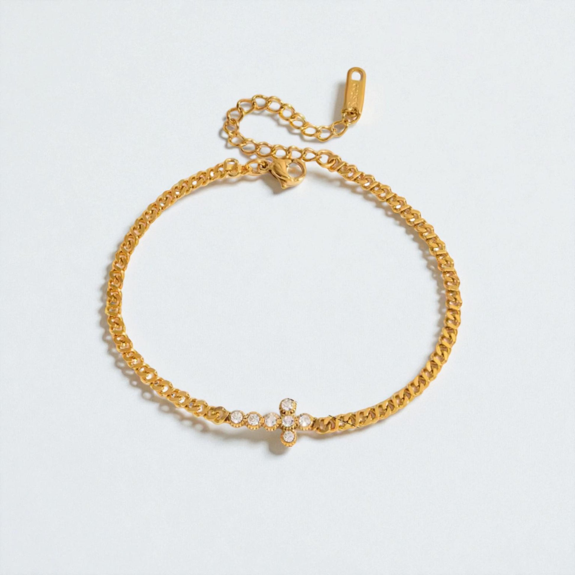 Embrace graceful elegance with this petite cubic zirconia cross bracelet. The slender chain and brilliant stones create a refined look that transitions seamlessly from day to night. A meaningful piece that adds just the right touch of sparkle to your jewelry collection.
