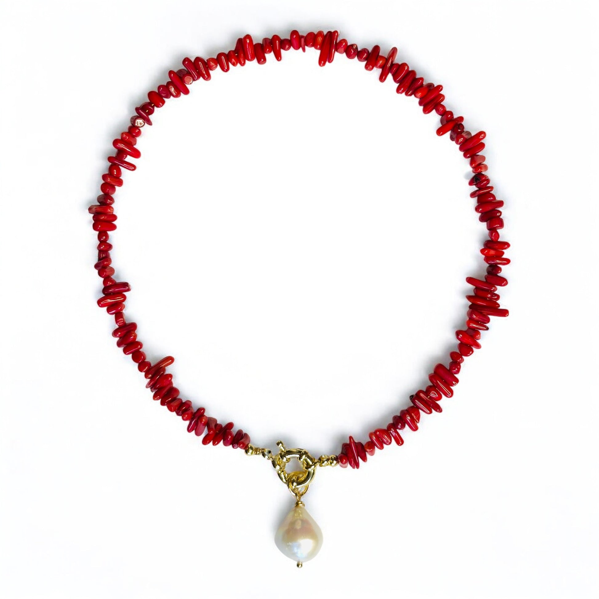 The Isla Necklace features a graceful combination of natural irregular stones, accented by a distinctive baroque pearl pendant. This piece marries organic textures with elegant charm, offering a refined accessory that complements both casual and formal attire with subtle sophistication.