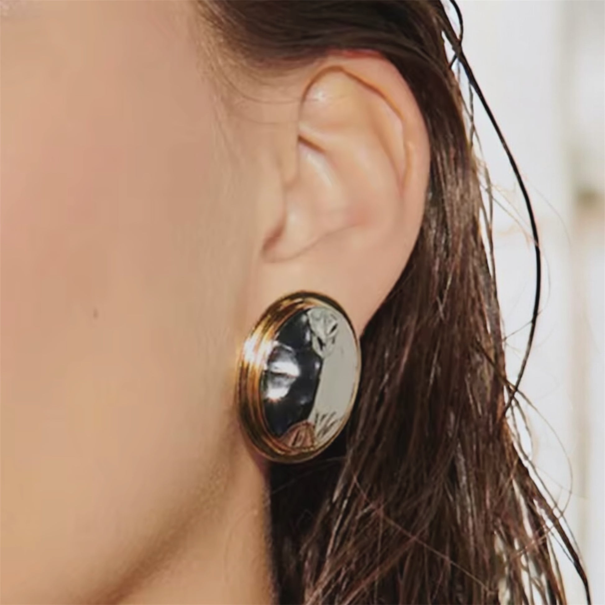 These Oval Stud feature a sophisticated bicolor design with silver and gold, highlighted by a distinctive hammered pattern. Their elegant blend of metals and textured finish adds a refined touch to any look.