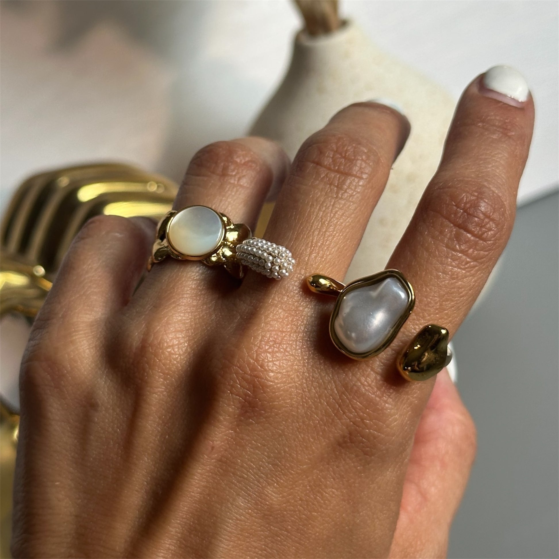 This ring its organic shape and pearly glow reminiscent of a sea pearl is an effortlessly elegant, it captures the beauty of nature in a timeless luminous design.