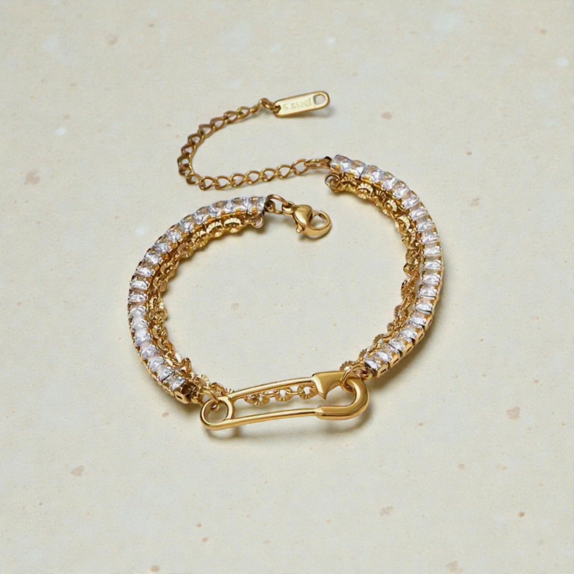 Add some edge to your wrist with our Safety Pin Tennis Bracelet. With a double bracelet design featuring a sleek chain and classic tennis bracelet, the safety pin charm adds just the right amount of edginess and flair. Perfect for any occasion, this bracelet is a must-have for any fashion-forward individual.