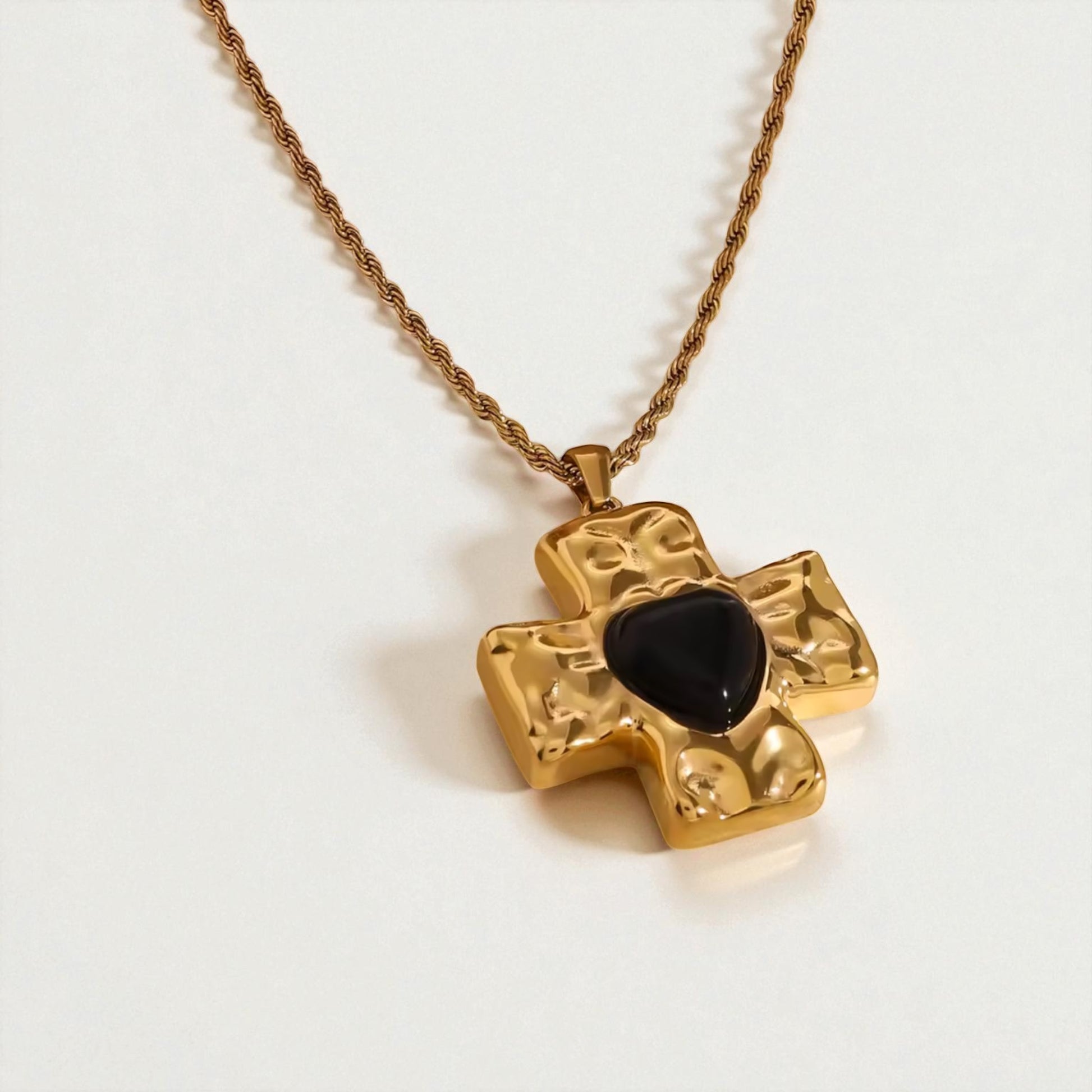 Elevate your style with our Black / Red Cross Necklace. Featuring a chunky cross charm adorned with a striking resin heart, this necklace adds a touch of edge and elegance to any outfit. Perfect for those seeking a unique accessory that makes a bold statement.