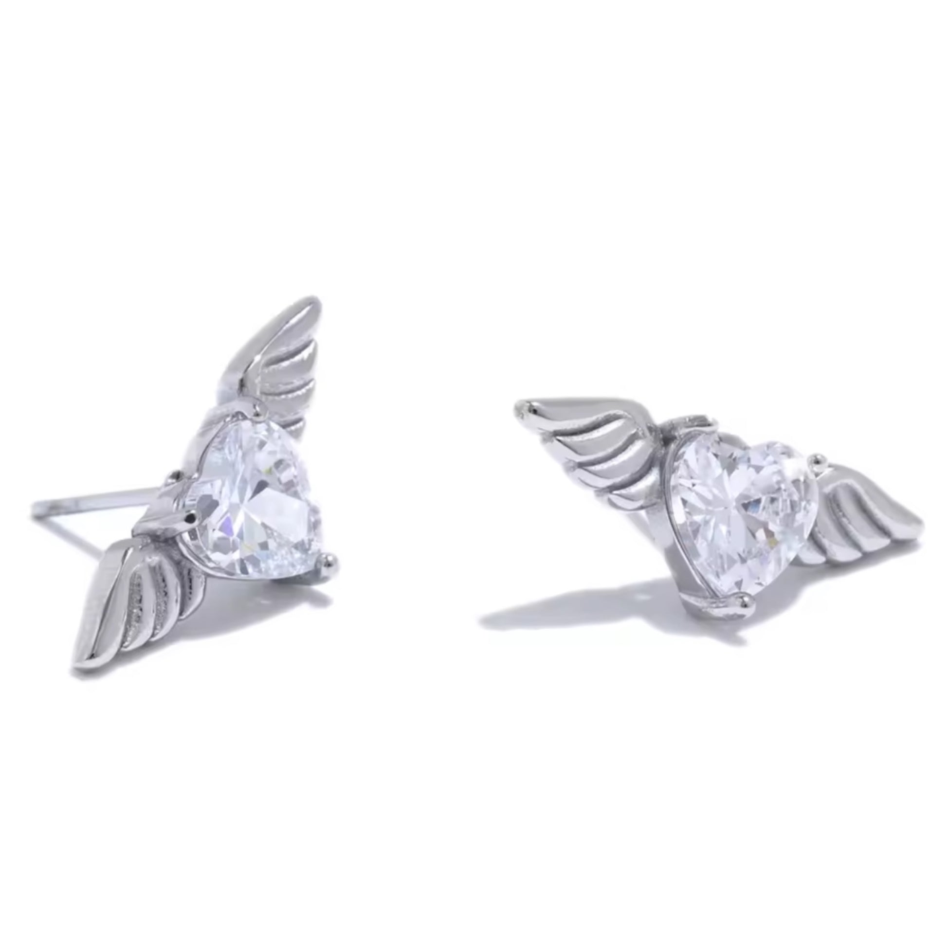 These crystal heart and wings studs exude refined elegance with their sparkling crystal hearts and delicate wing designs. Perfectly crafted to add a sophisticated and graceful touch to any look.